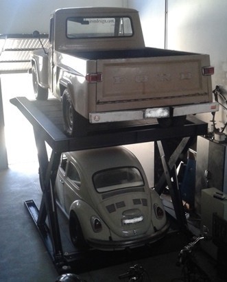 # Dispositivo de elevação com acionamento eletro-hidráulico que possibilita estacionar dois veículos em uma mesma vaga.